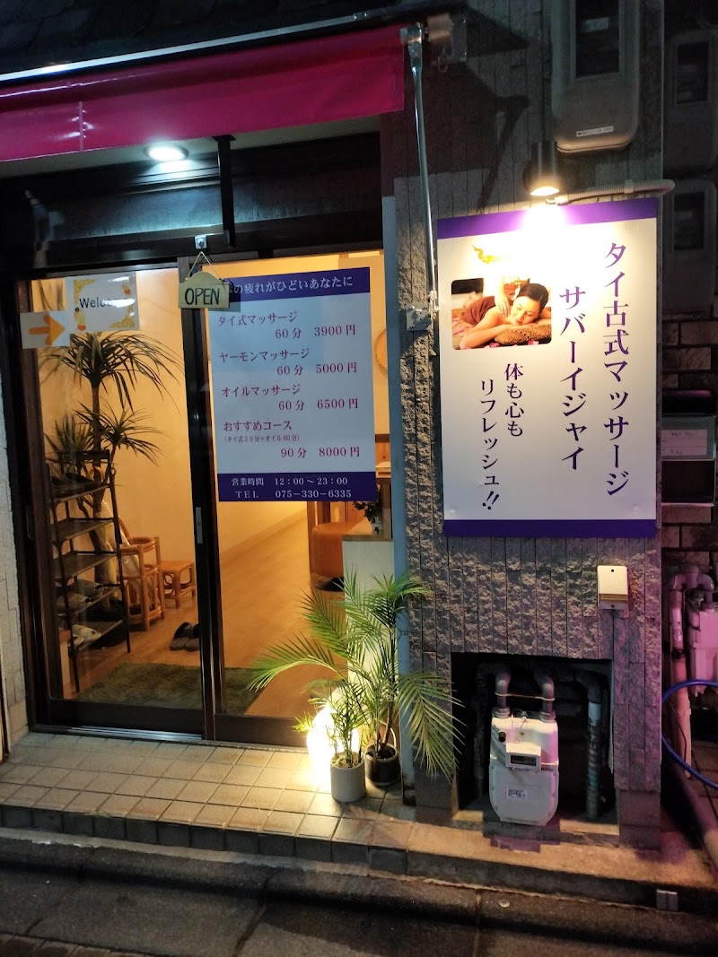 京都伏見の中書島駅近くで、4.9の高評価を獲得するタイ古式マッサージ専門店。毎日12時から23時まで営業しており、本格的なタイ古式マッサージを気軽に利用できます。